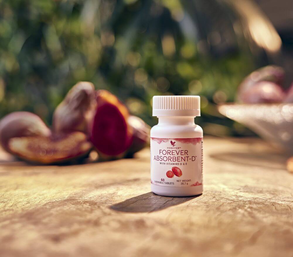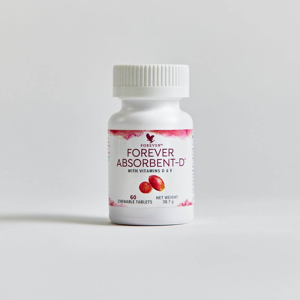 Forever Absorbent-D™ pruža izvrstan izvor vitamina D kao podršku imunom zdravlju i pomoć pri održavanju zdravih kostiju. Uz dodatak antioksidansa vitamina E, dolazi u obliku tableta za žvakanje sa prirodno slatkim ukusom opuncije (indijske smokve).