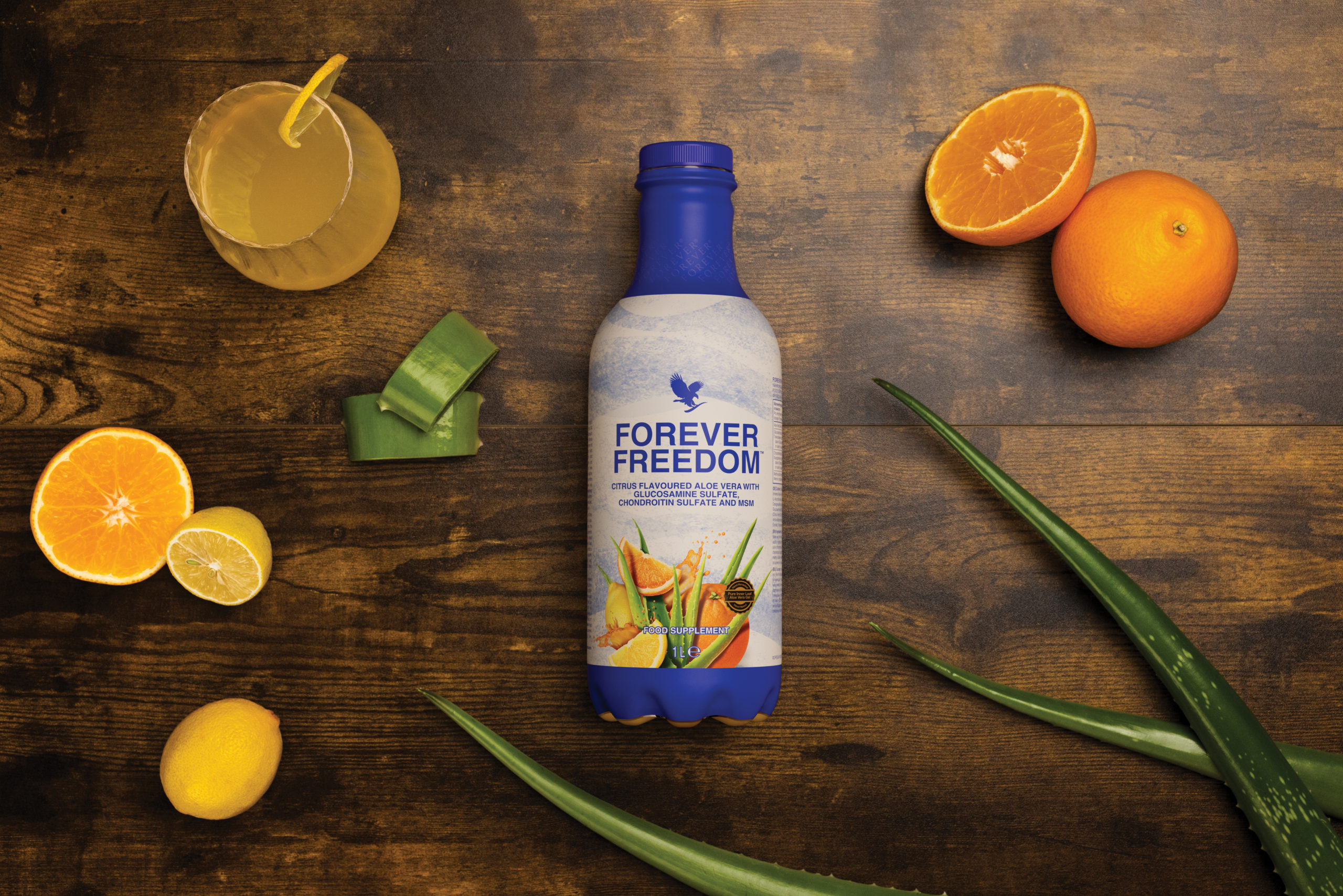 Forever Freedom vam pomaže da se krećete udobno i samouvjereno zahvaljujući dnevnom napitku koji kombinuje Foreverov čisti gel iz unutrašnjosti lista aloje vere sa tri naučno dokazana sastojka koja pospješuju funkciju i pokretljivost zglobova: glukozamin-sulfat, hondroitin-sulfat i metil-sulfonil-metan (MSM).